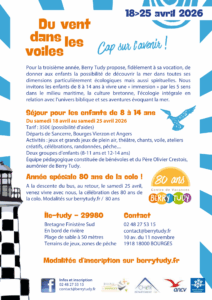 Cette nouvelle proposition de Berry Tudy se veut fidèle à sa vocation de donner aux enfants la possibilité de découvrir la mer dans toutes ses dimensions particulièrement écologiques mais aussi spirituelles. Nous invitons les enfants de 8 à 14 ans à vivre une « immersion » par les 5 sens dans le milieu maritime, la culture bretonne, l’écologie intégrale en relation avec l’univers biblique et ses aventures évoquant la mer.